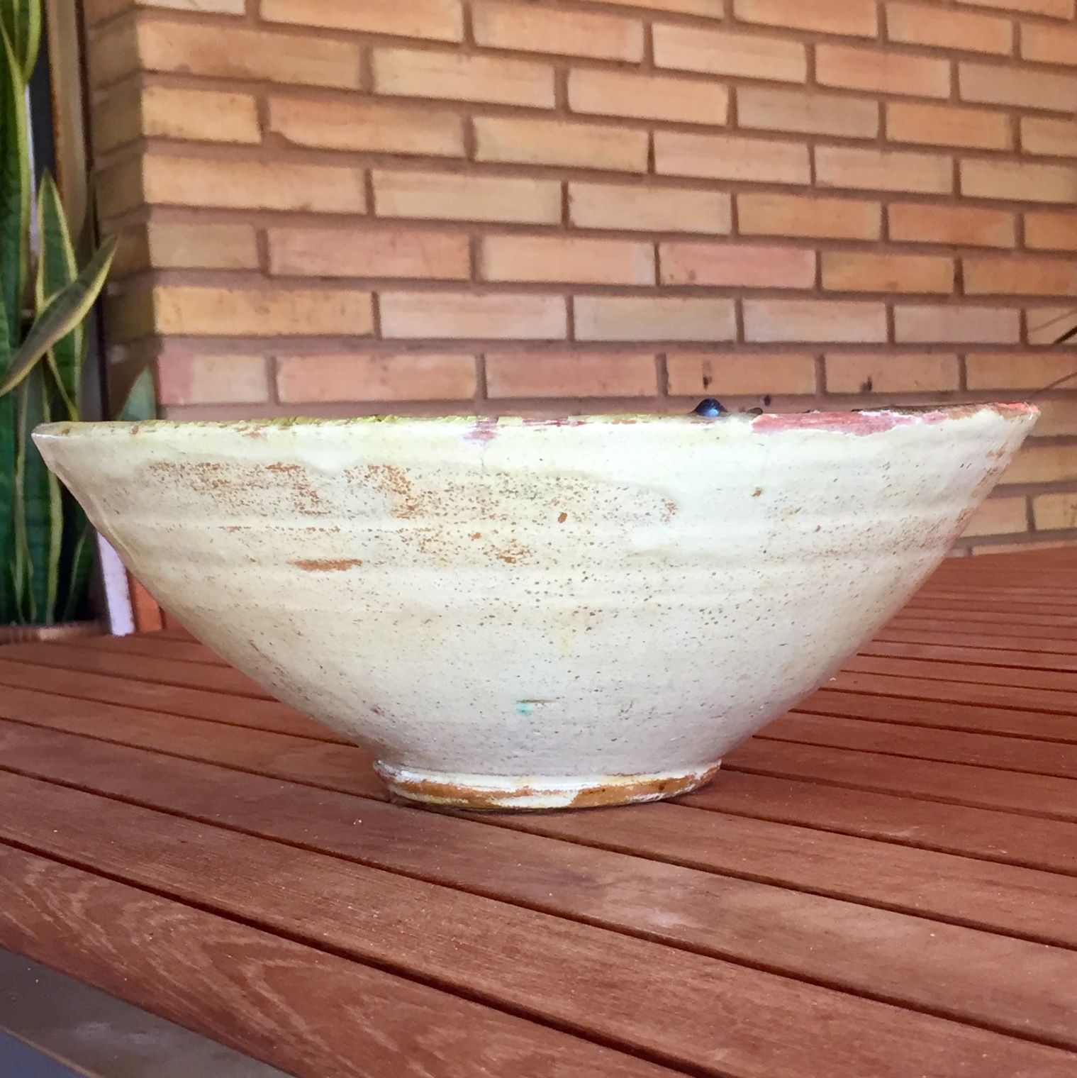 Antiguo lebrillo escurridor de cerámica popular de base estrecha, culo de mono.