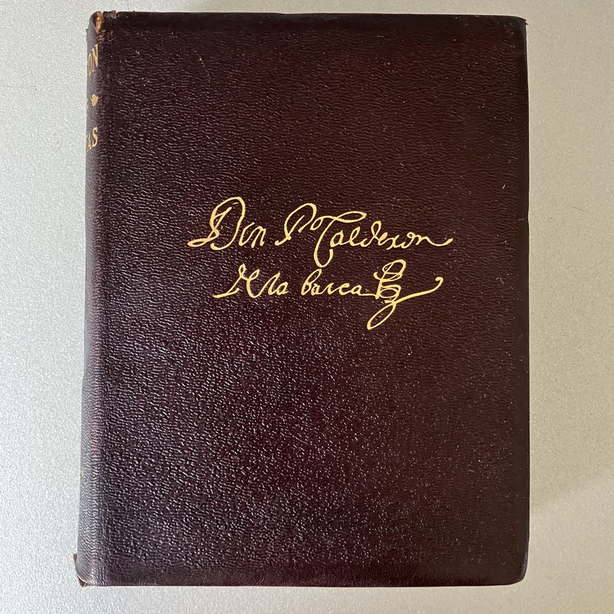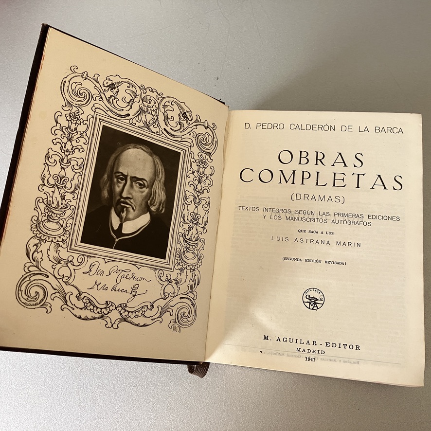 Libro de colección con las Obras Completas de Calderón de La Barca, publicado por la Editorial Aguilar en Madrid, en 1941. Un ejemplar de gran valor bibliográfico, perteneciente a su prestigiosa colección de “Obras eternas”.