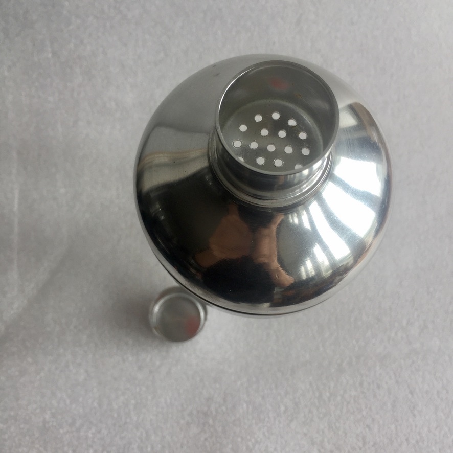 La coctelera conserva toda su presencia original, con un acabado limpio y brillante.