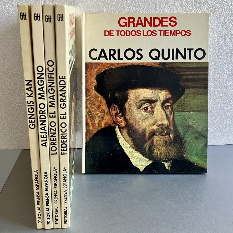Colección completa (5 volúmenes) de la enciclopedia “Grandes de todos los tiempos”, publicada por Prensa Española, dedicada a cinco figuras históricas de gran relevancia. Cada volumen presenta una aproximación clara y divulgativa, acompañada de ilustraciones y material gráfico que enriquecen la lectura.