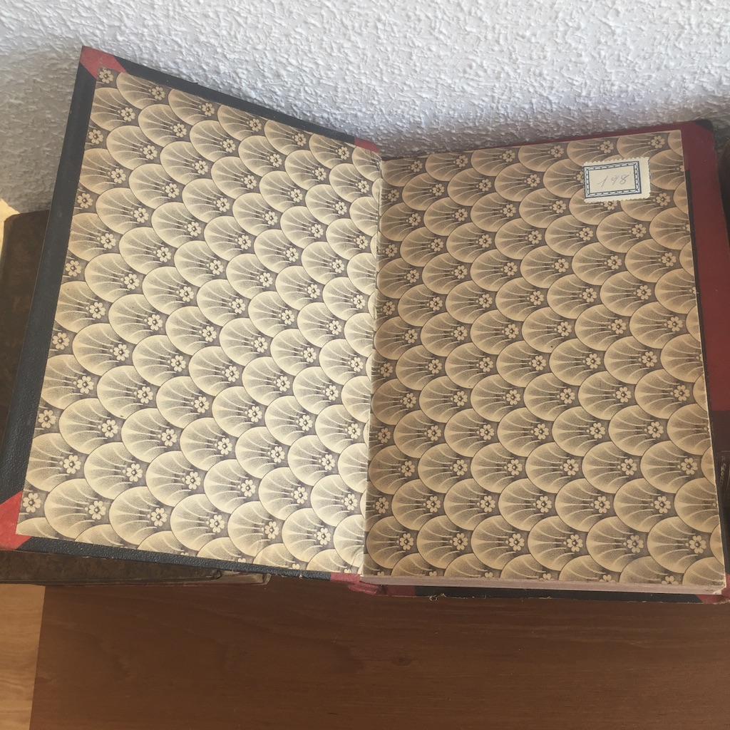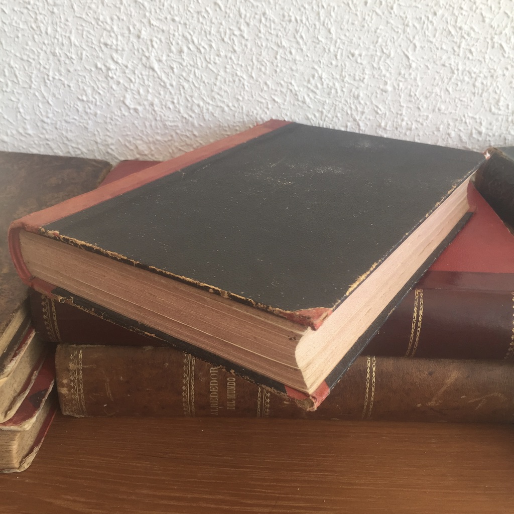 Encuadernación holandesa con puntas reforzadas y dorados en el lomo.