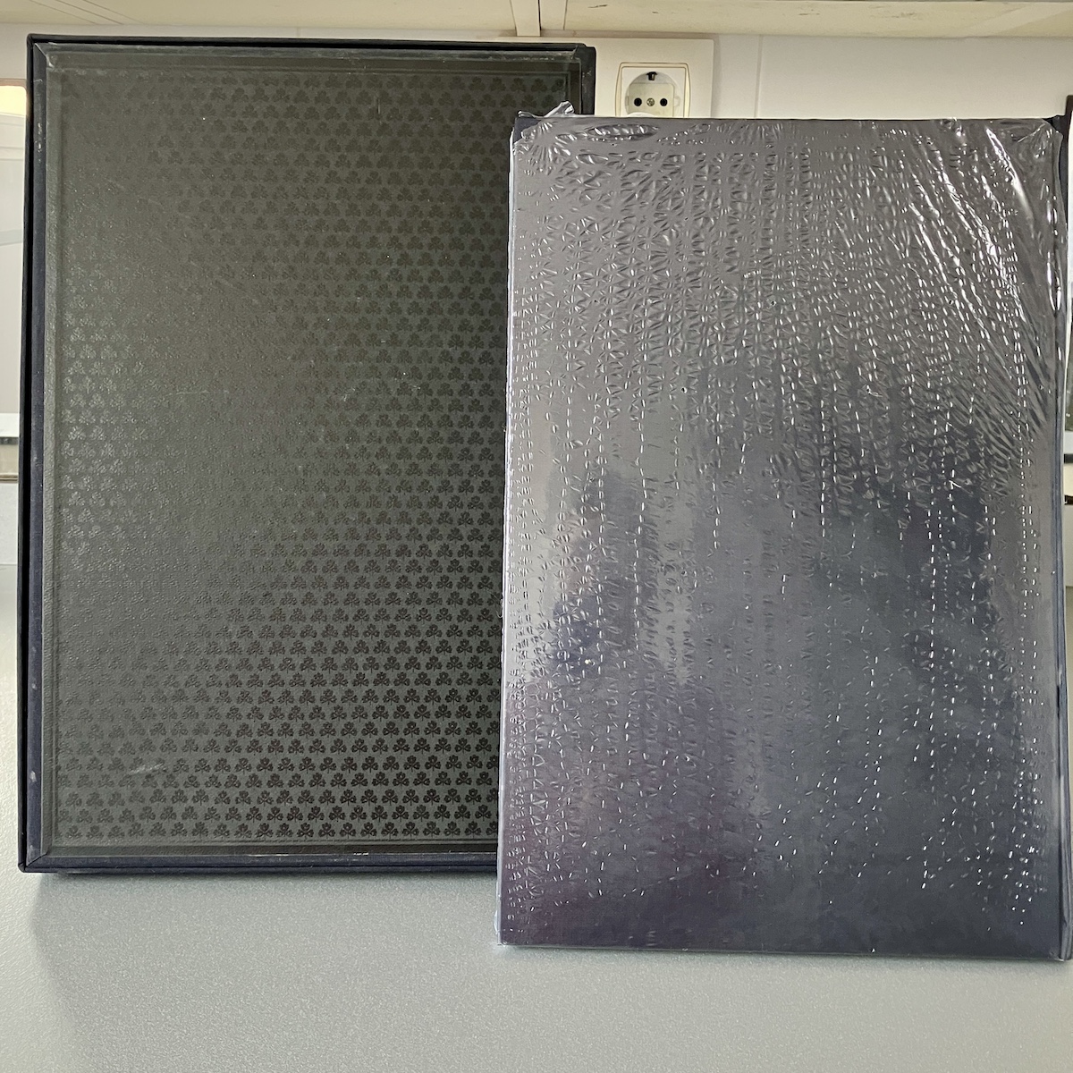 Encuadernado en seda negra “Orient” con plataforma de color e impresiones doradas. Papel verjurado azul hecho a mano por Pietro Milani de Fabriano. 23,3 x 35,5 cm. 172 páginas con láminas montadas a todo color + colofón. Se presenta en un estuche protector de lujo de 25,3 x 37 cm.