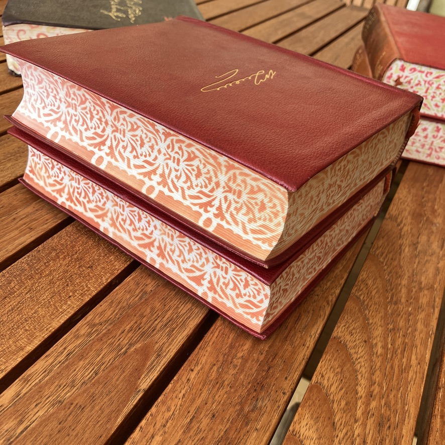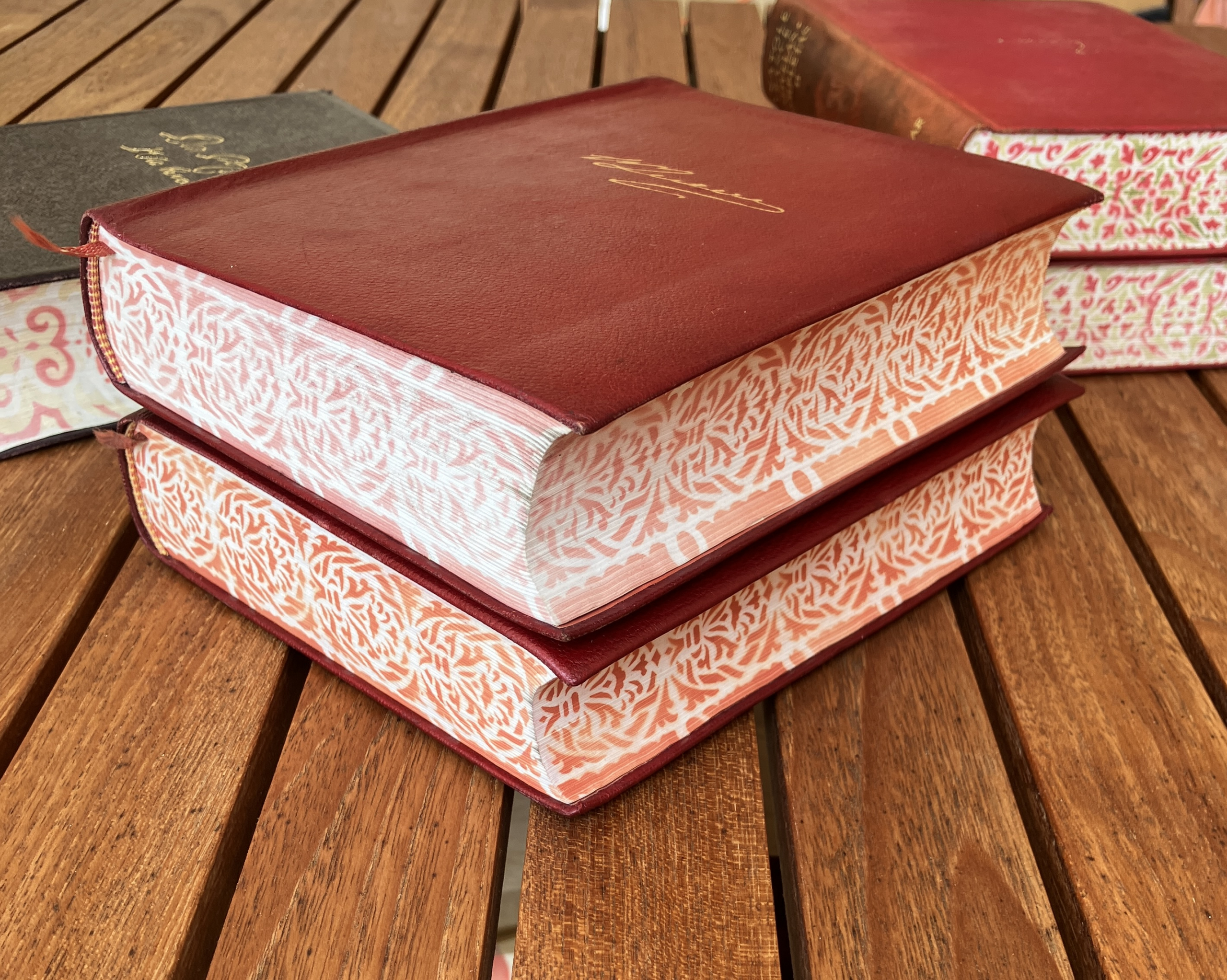 - Encuadernación: editorial en plena piel, 8º mayor, 18 x 14 cm. Impresión en papel biblia. Cinta guía de lectura. Lomo dorado y con busto del autor estampado en seco. Cortes decorados.