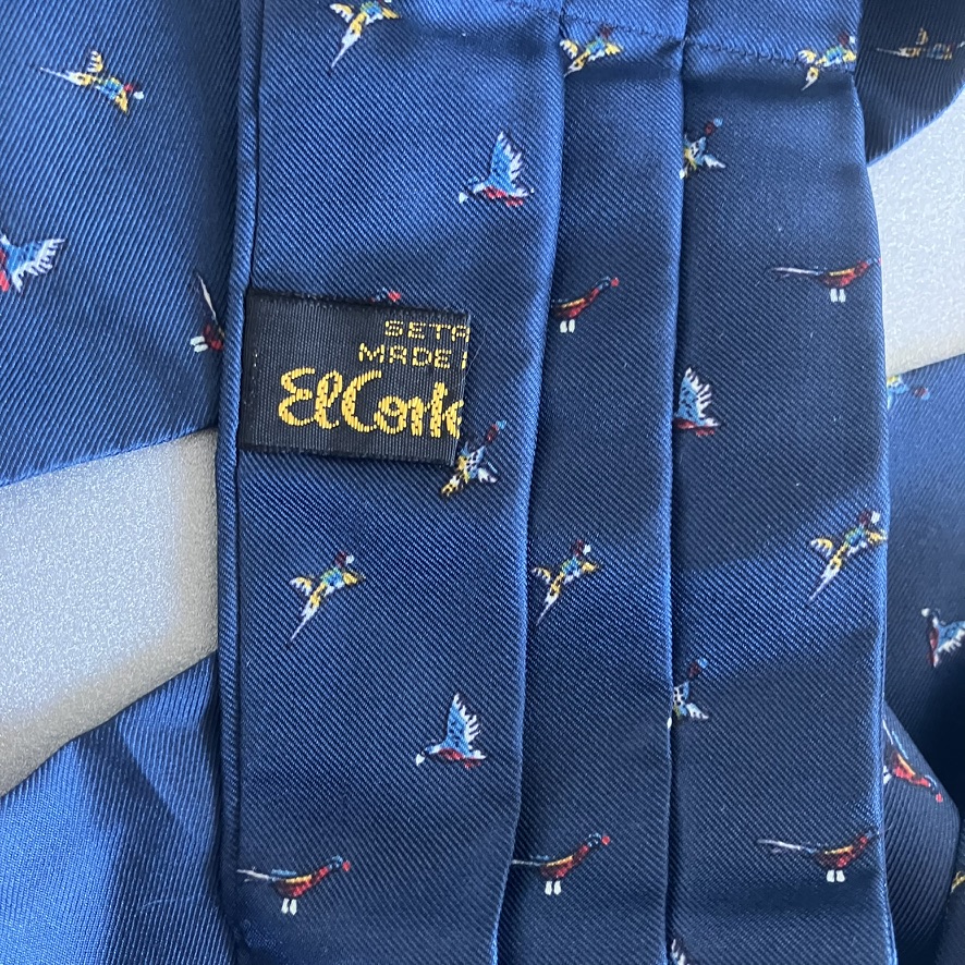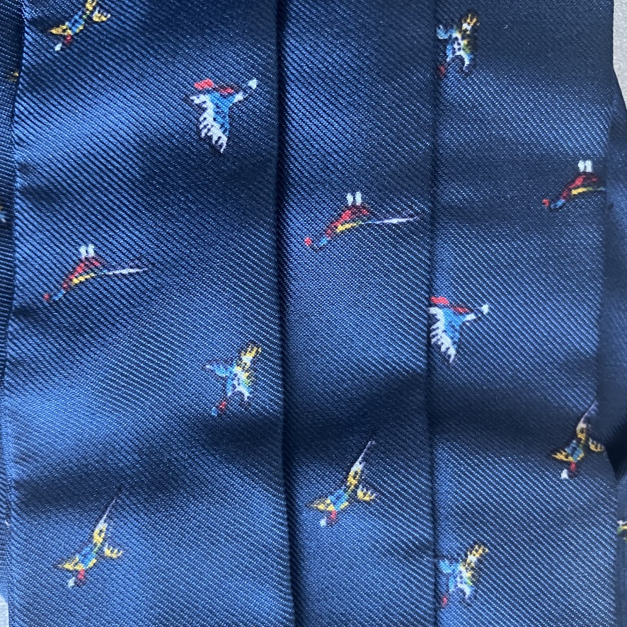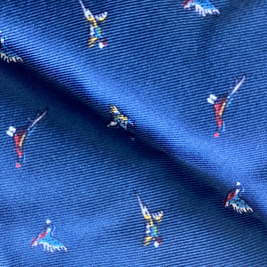 Corbata de seda azul marino, o pañuelo Ascot, estampado con  pajaritos.