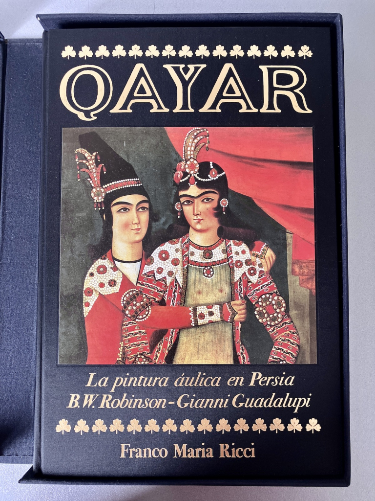 QAYAR La pintura áulica en Persia. Edición de lujo publicada por Franco María Ricci en la Colección “Los signos del Hombre”. Edición limitada a 5000 ejemplares (n° 1028) y firmada por el editor.