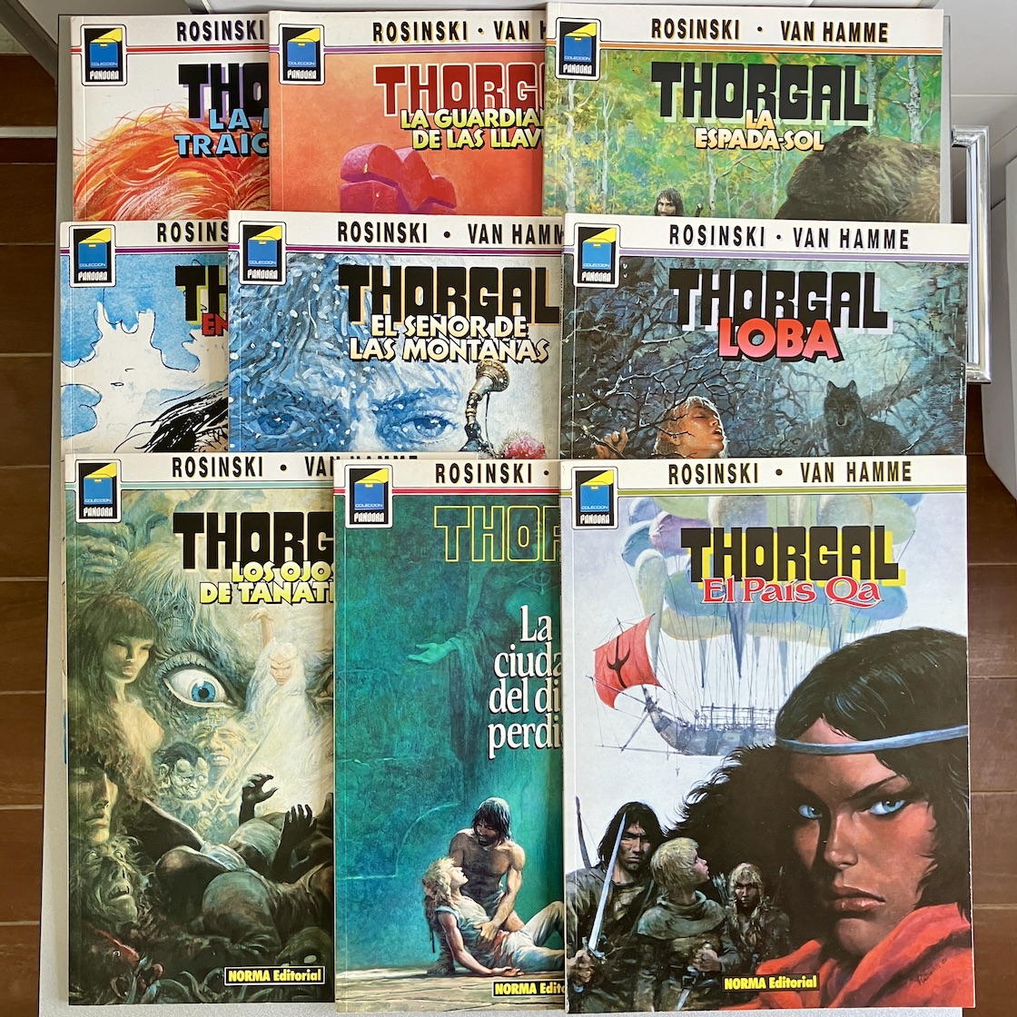 Serie: Los mundos de Thorgal. Colección Pandora, números: 3,9,12,15,20,26,32,37 y 41. Primeras ediciones.