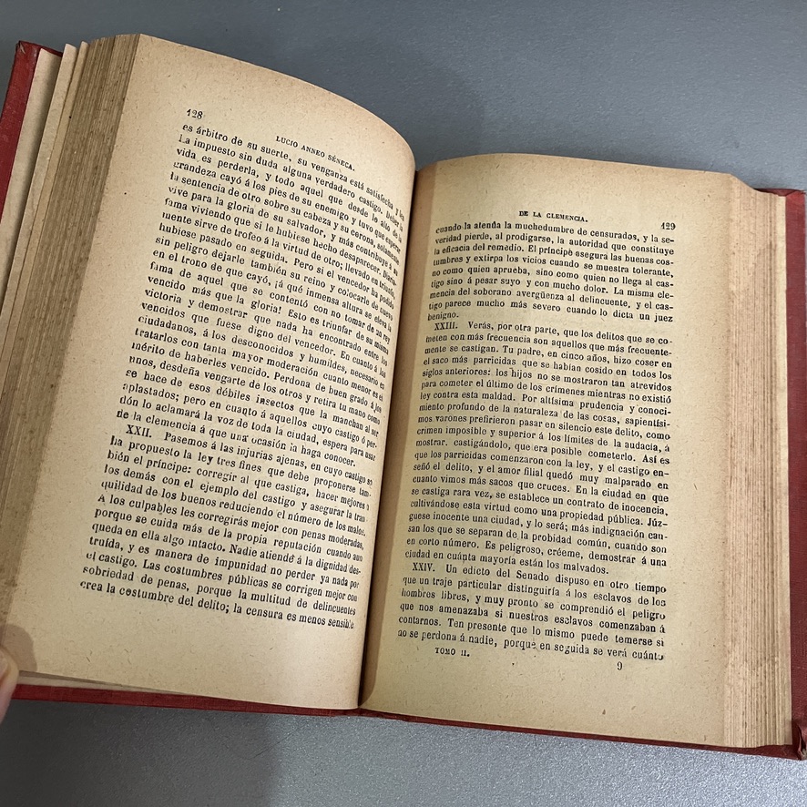 “Tratados filosóficos II ” escrito por Séneca (Lucio Anneo) en 1913. Un ejemplar coleccionable con encuadernación artística, de principios del siglo XX.